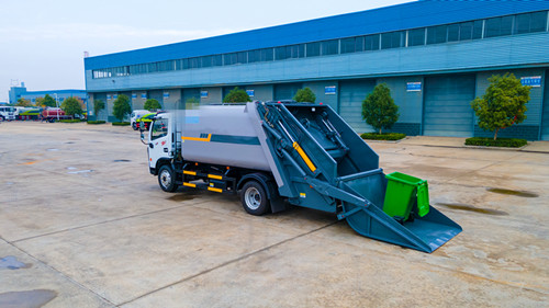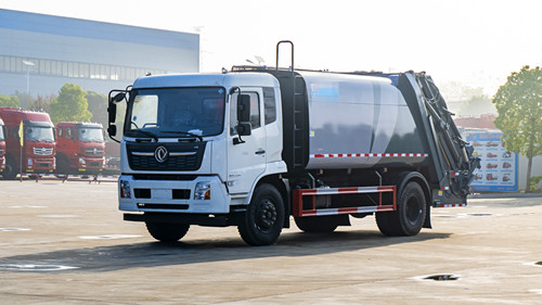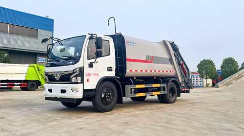 東風(fēng)多利卡壓縮式垃圾車(chē)改裝容積10~12m3,選用3950和4500兩種軸距底盤(pán),箱體采用邊4底5、Q235碳鋼板,帶有前推板和刮板,帶有污水箱。雙向壓縮,標(biāo)配帶掛桶反轉(zhuǎn)機(jī)構(gòu),可選其他樣式后翻轉(zhuǎn)。